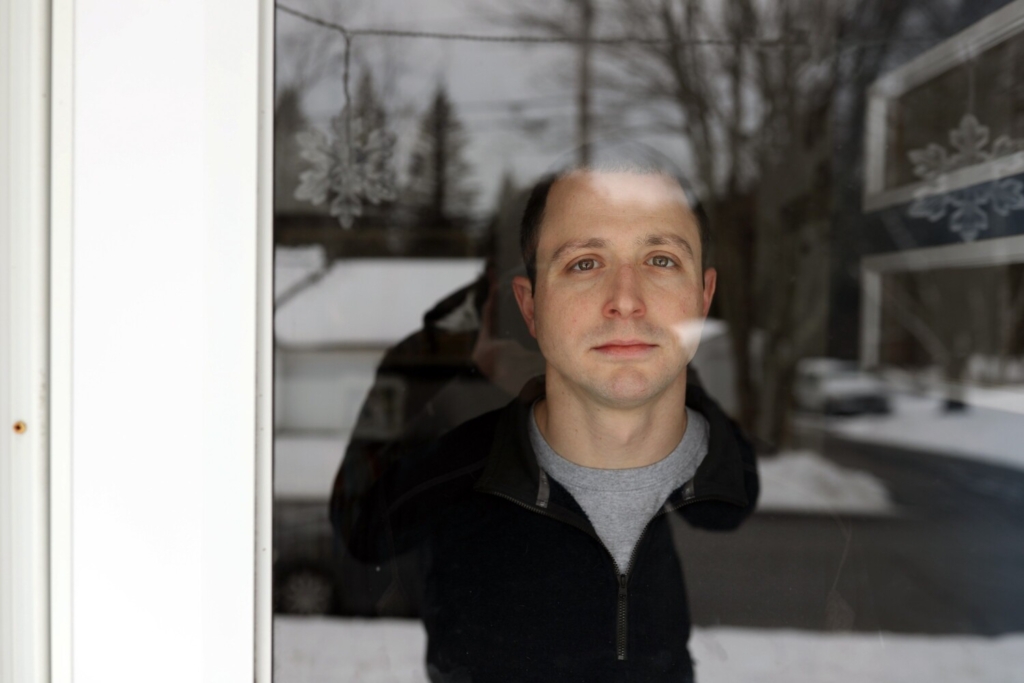 Zack Chase seen through the closed front door of his Biddeford home. Chase wasn’t surprised when his COVID-19 test came back positive Thursday morning. He woke up with a tickle in his throat and a little bit of congestion. Normally, he would have written it off as a head cold, but since his wife, Haley, had also just tested positive, he knew it was likely. Chase, like many others, feels lucky that he and his family have so far been largely unscathed. Ben McCanna/Staff Photographer