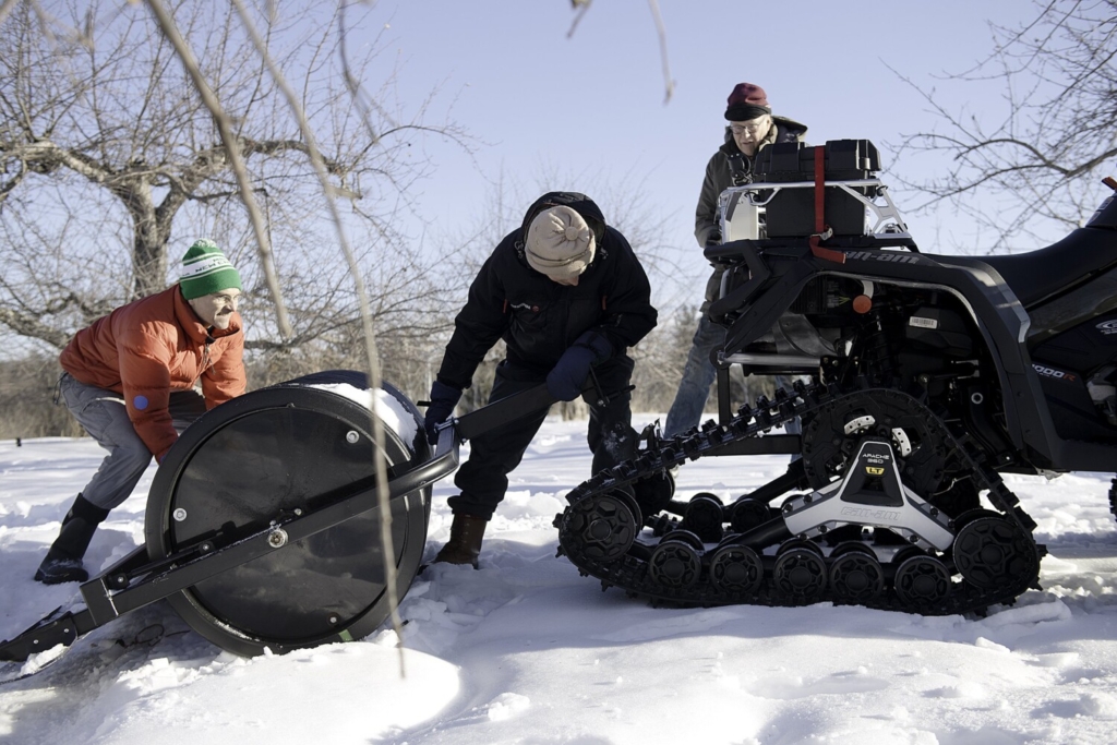 Volunteer snow groomers Bruce Condit, left, Amos Woodward and Charlie Armstrong, all of Auburn, prepare grooming equipment Tuesday at the Auburn Nordic Ski Association network of trails. The snowfall on Martin Luther King Jr. Day was a warm welcome to cross country and snowmobile clubs across Maine. The Auburn Nordic Ski Association is a group of volunteers that maintain a network of cross-country ski and snowshoe trails off Perkins Ridge Road. The trails are home to the Edward Little High School and Auburn Middle School Nordic ski teams and provide a place Sunday afternoons for young children to learn how to ski. Daryn Slover/Sun Journal