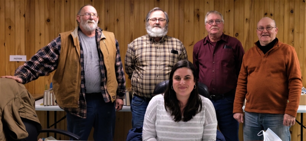Dixfield Town Manager Alicia Conn has been signed to a three-year contract by unanimous vote of the Board of Selectmen on Jan. 24. Standing behind her are board members Ricky Davis, Chairman Norm Mitchell, Pete Holman and Richard Pickett. Bruce Farrin/Rumford Falls Times