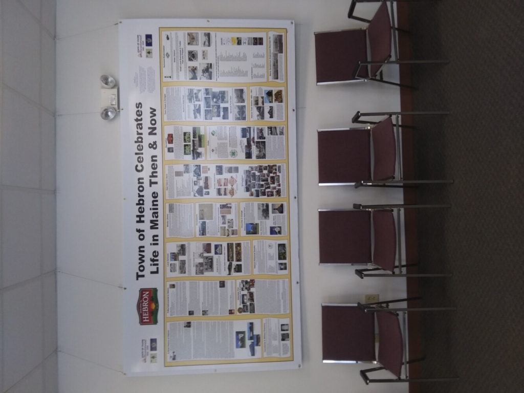 Besides the huge history panels constructed for the parade, she voluntarily initiated, and hopes to continue, with the help of the Society, collecting additional history for a booklet containing this information for eventual publication for the public interest. The panels are currently hanging on display at the Hebron Town Office and at the Hebron Station School.