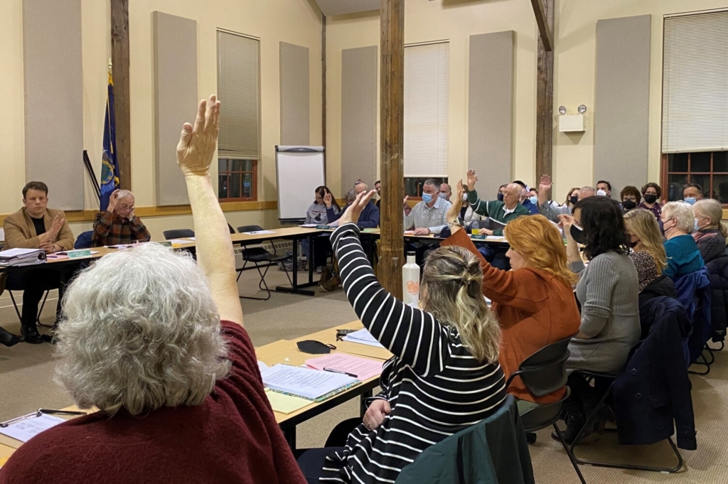 Members of the School Administrative District 17 board vote Monday night in Paris to immediately make face masks optional. The mandate had been in place since the COVID-19 pandemic hit Maine in 2020. Nicole Carter/Advertiser Democrat