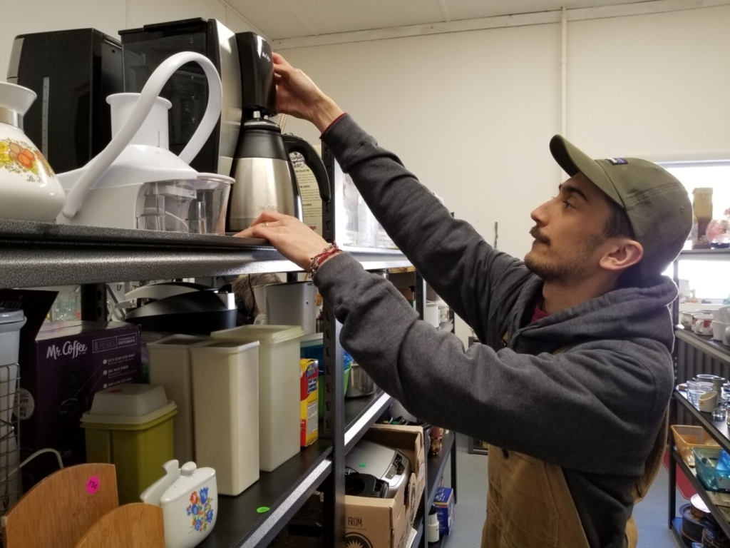 Christopher Spiegel of Jay volunteers Tuesday at the St. Rose Thrift Store in Jay. He is serving as a missionary at the St. Rose of Lima Catholic Church in Jay and St. Joseph Catholic Church in Farmington. Donna M. Perry/Sun Journal