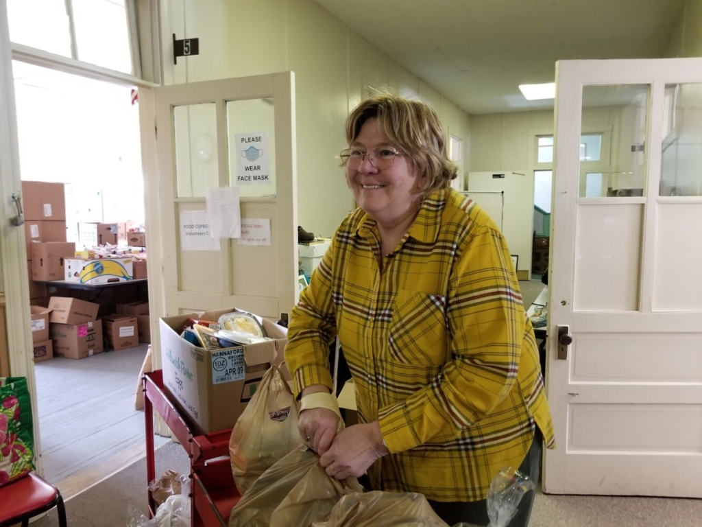 Jan Arsenault of Jay unties bags Tuesday at the Tri-Town Ministerial Association Food Cupboard at St. Rose Parish Hall in Jay. Last year, the facility was presented The Spirit of America Award by selectmen. The cupboard provides over 50,000 meals each year in Jay, Livermore and Livermore Falls. In 2020, about 50 volunteers worked 2,700 hours to help get meals to people in need. Donna M. Perry/Sun Journal