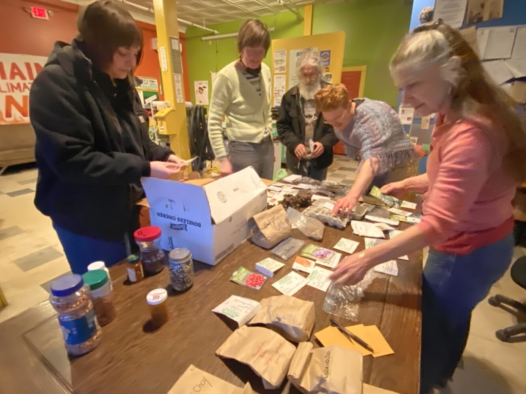 Sharing seeds at the Center for an Ecology-Based Economy’s annual Seed Swap March 31 in Norway.