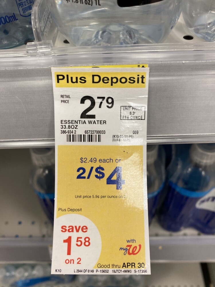 Following reports that Walgreens was overcharging for its state-mandated bottle deposit fee, reporters returned to regional locations Tuesday, April 5, and found the surcharge was no longer present. Additionally, price labels on shelves now state “plus deposit.” Kay Neufeld/Franklin Journal
