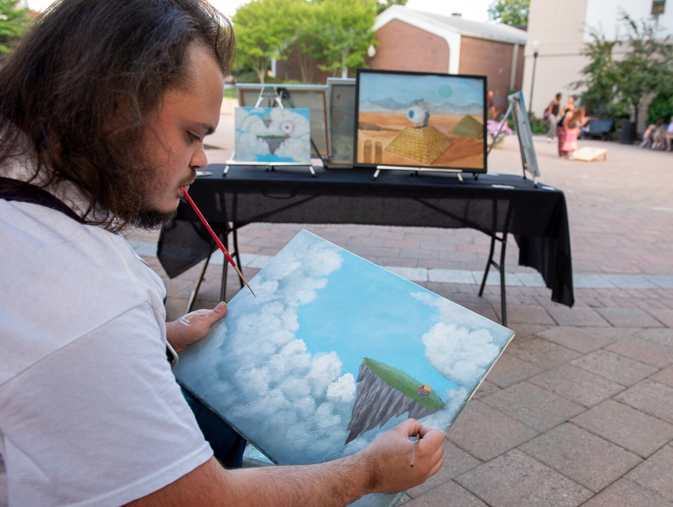 Bryce Cloutier works on a painting Friday night during Art Walk LA in Dufresne Plaza in Lewiston. Russ Dillingham/Sun Journal