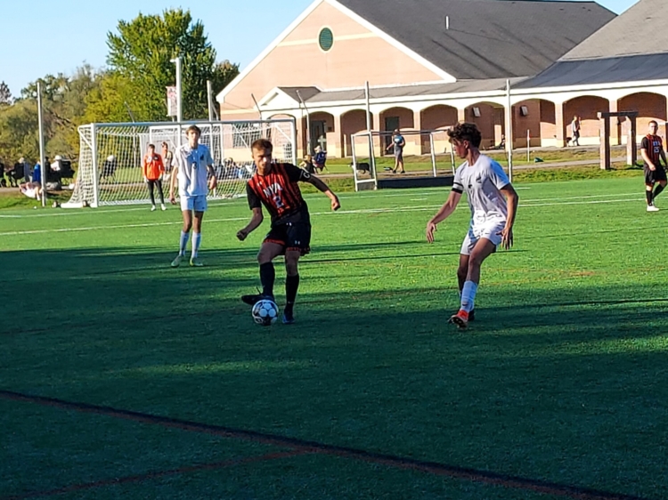 Hosting Gray-New Gloucester at Lewis Field, the Panthers fell behind midway through the first half when senior Max Kenney scored for the Patriots and with under five minutes to play, despite having some golden opportunities, appeared destined for a disappointing defeat.
