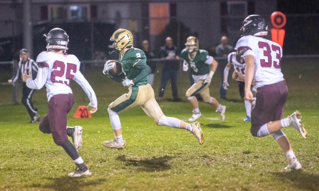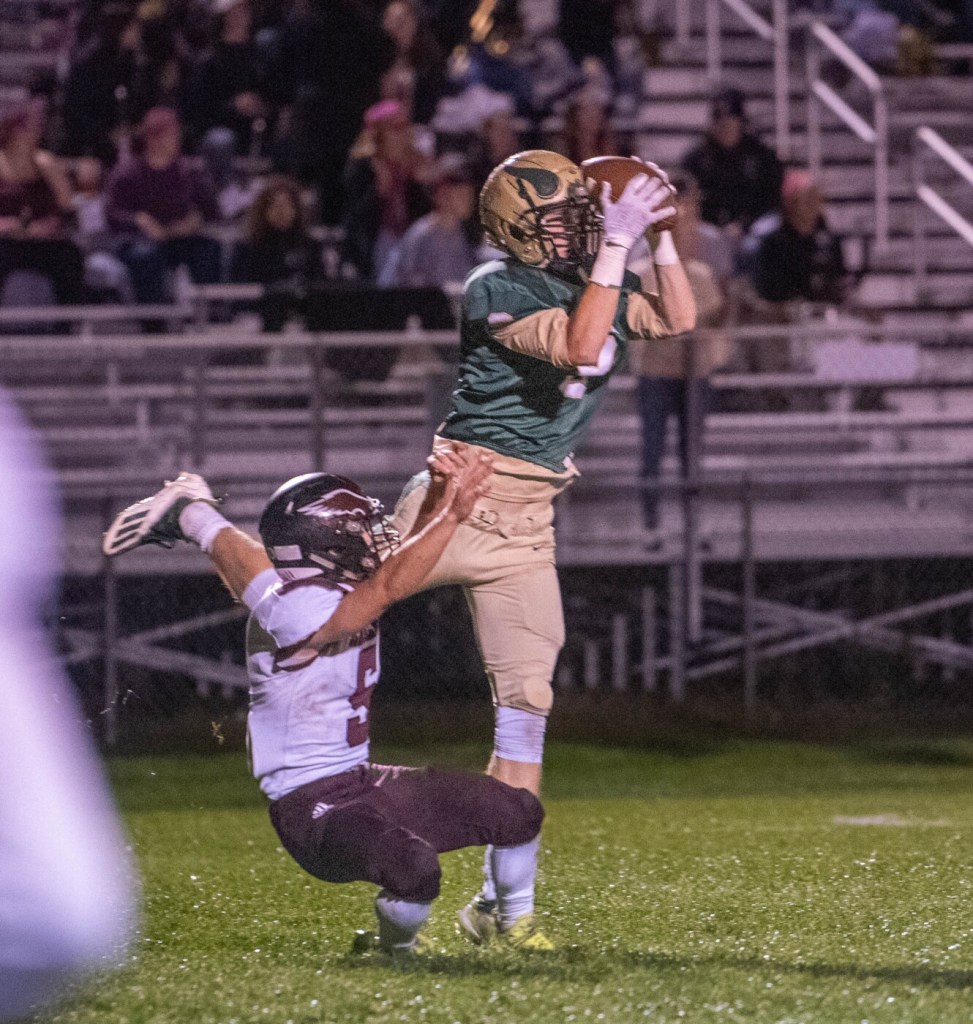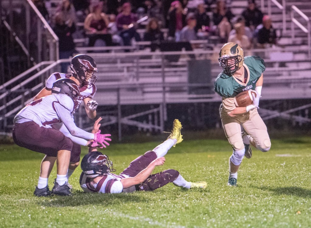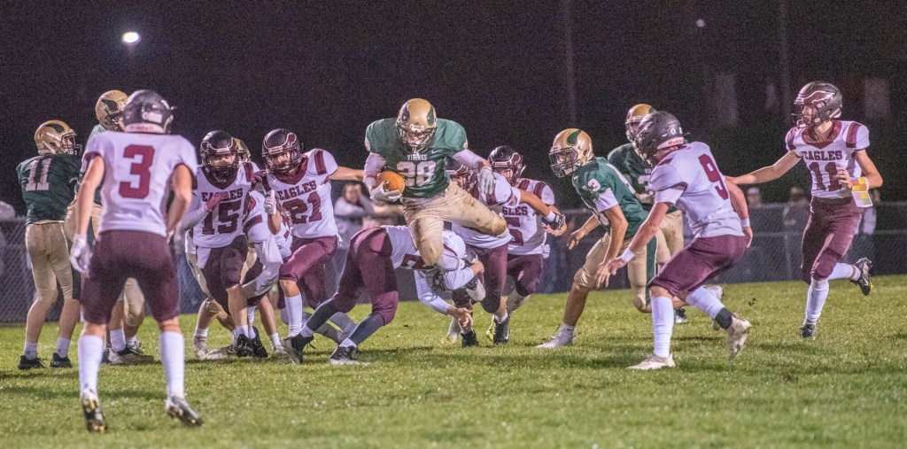 Soehren was 4 for 4 in the first quarter, including an 18-yard completion to Lincoln Merrill on the Vikings’ (7-0) first offensive play of the game. He also connected with Pelletier for 24 yards on a second-and-26 play, as Pelletier snagged the ball over the head of a shorter Eagles defender.