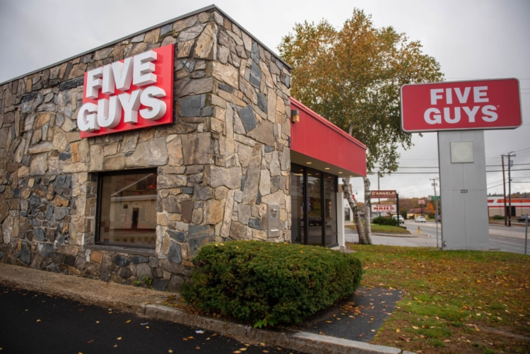 At Five Guys on Center Street in Auburn, a cheeseburger, small fries and a drink will cost you $16.57. Andree Kehn/Sun Journal