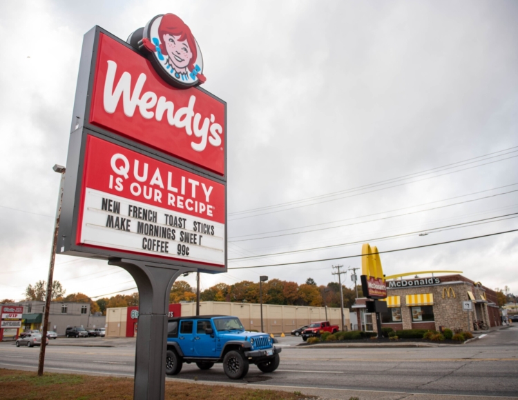 Wendy’s and McDonald’s on Center St in Auburn have seen their prices rise drastically, according to a comparison of prices by MoneyGeek.com. Andree Kehn/Sun Journal