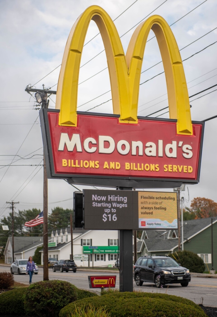 McDonald’s on Center Street in Auburn is displaying Help Wanted ads on its sign. Andree Kehn/Sun Journal