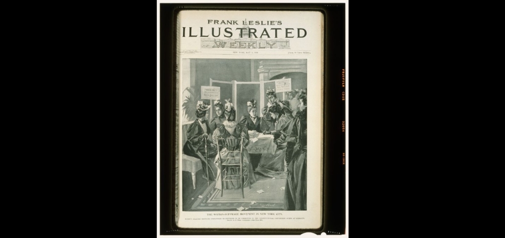 The woman-suffrage movement in New York City society leaders securing signatures to petitions to be presented to the constitutional convention. Library of Congress