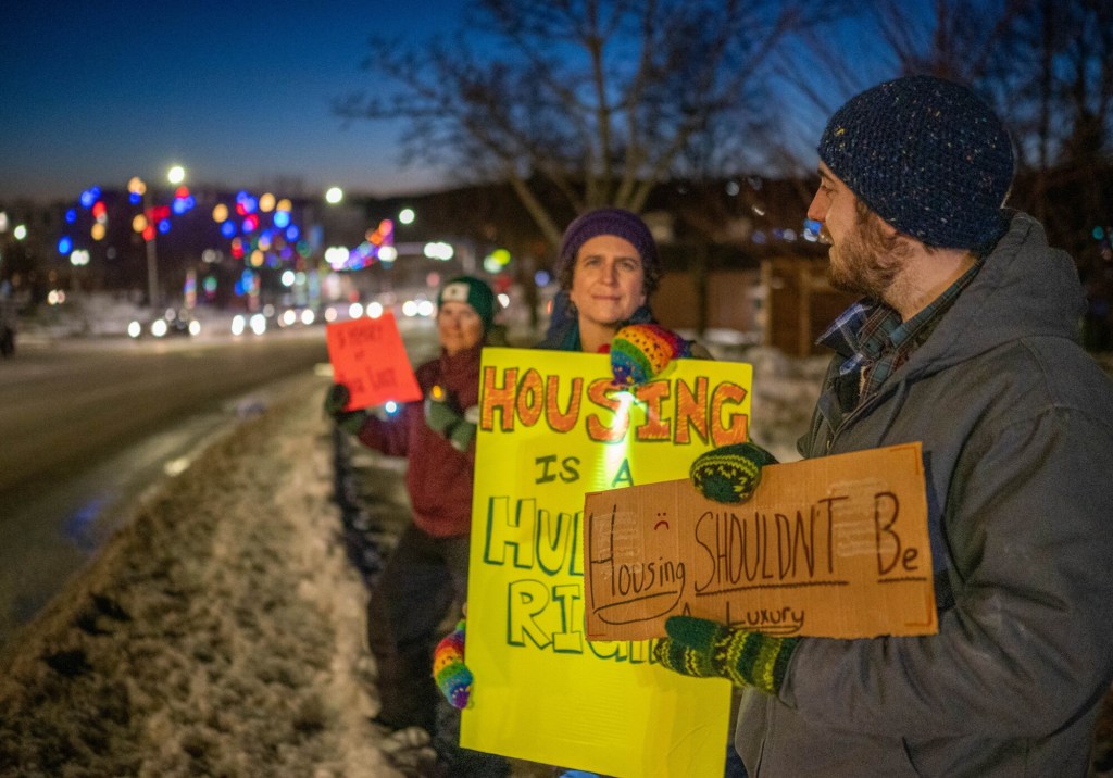 “Housing is a human right,” declared one sign.