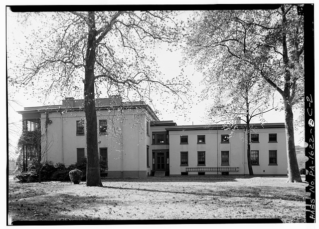 North side elevation, showing main section and ell of the U.S. Naval Asylum, surgeon’s residence, on Gray’s Ferry Avenue in Philadelphia, Pennsylvania. Library of Congress photo