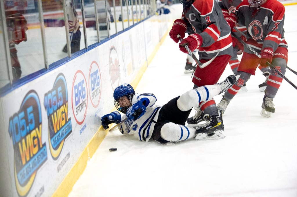 Freshman defenseman Jacoby Oliveira put the Blue Devils (6-7) up 1-0 when his wrist shot from inside the blue line beat Curtis 3:44 into the second period. Aidan St. George had the assist.