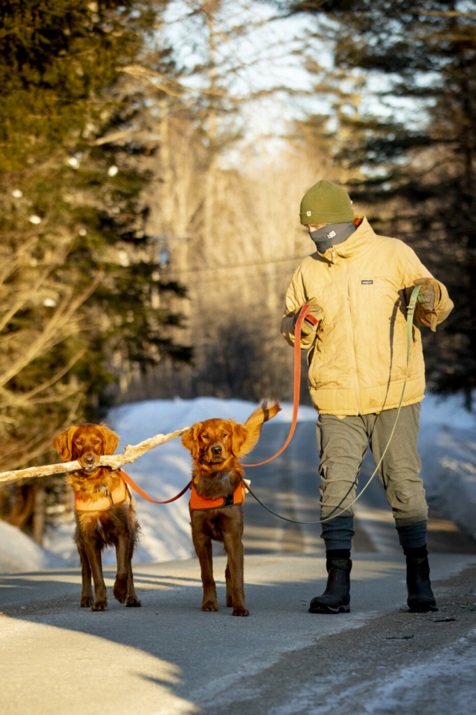 Scott Harvey of Bethel, walks Remy, left, and Winn, his dogs, in -14 degree weather, on Intervale Road. “It’s not that bad,” he said of the cold weather. Rose Lincoln