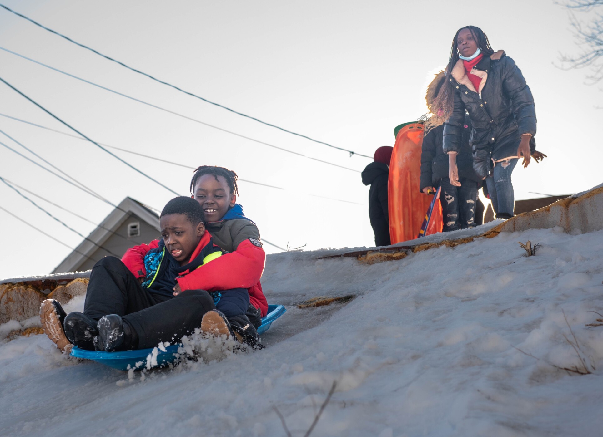 Roberto, in front, and Giovani sled Feb. 8 down a steep hill near Mark W. Paradis Park in Lewiston. The boys are participating in the Root Cellar’s after-school Rooted Mentoring program, which features fun, field trips and enrichment programs, including science and art. Andree Kehn/Sun Journal