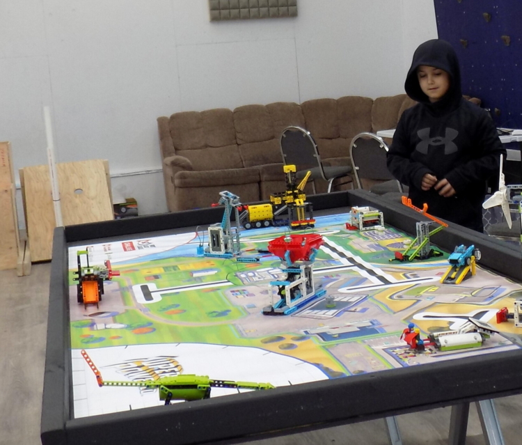Brett Allen stands beside this year’s robot game table April 11 at Smart Fun Learning Adventures, a private school in Farmington. Allen is part of Smart Fun Engineers, a FIRST LEGO League team representing Maine at the world competition in Houston, Texas. Pam Harnden/Livermore Falls Advertiser