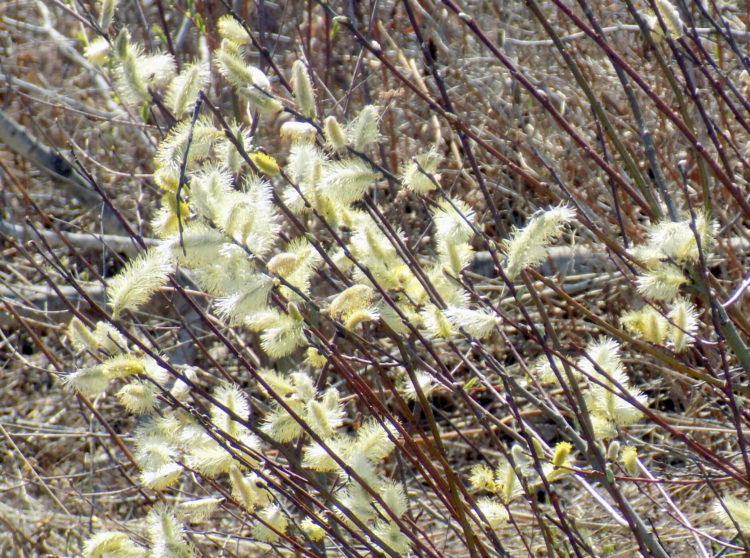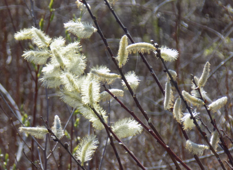 Pussy willows are one of the first flowers to announce spring is coming, usually around the first of March. Within weeks the fuzzy whitish-grey masses [for which the plant is named] transform into something completely different, as seen Friday afternoon, April 28, in North Jay. Pussy willows have separate male and female blossoms. In some species, the male catkin or blossom turns yellow as it matures. Pam Harnden/Livermore Falls Advertiser