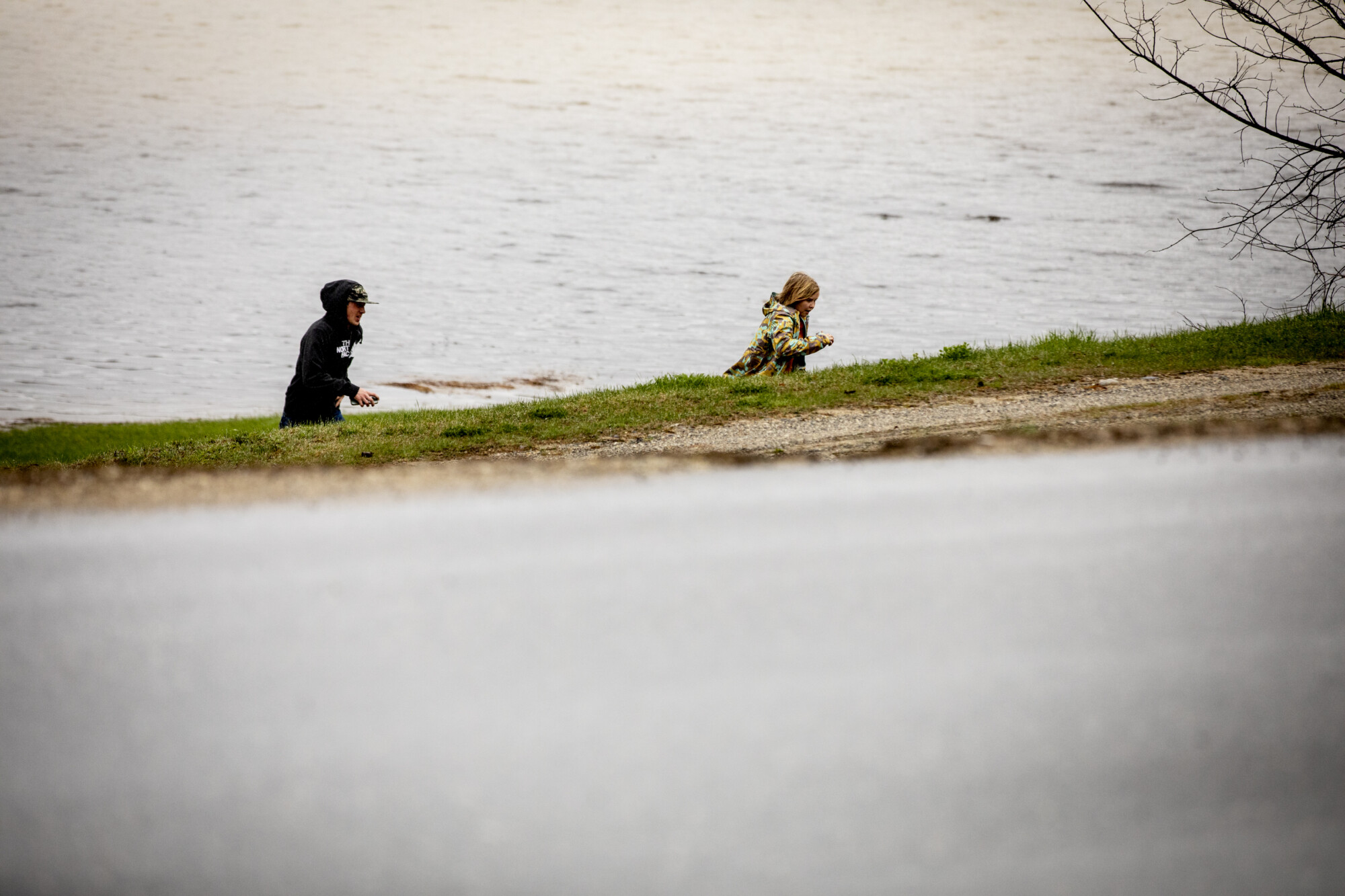 Marc Mullen of Newry, left, and Basil Lee, of Albany race beside a completely flooded field on Vernon Street after early release from school. She is the daughter of his best friend, Lauren Beatrice. Rose Lincoln