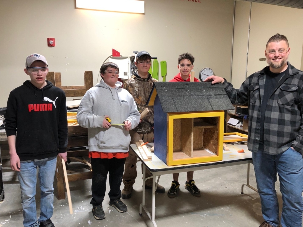 BRIDGTON — Charles (Chaz) Reed, a carpentry teacher at the Vocational Education (Voc Ed) program of Lakes Region High School, is having his classes build four Little Free Libraries for the Bridgton-Lake Region Rotary Club. The libraries are small weather-proof bookcases that will be placed in neighborhoods to enable people to share books 24/7.