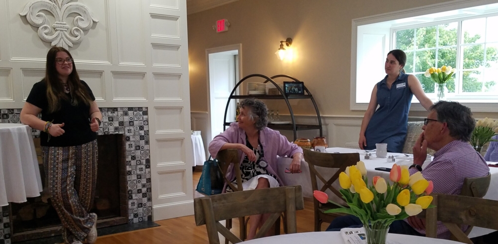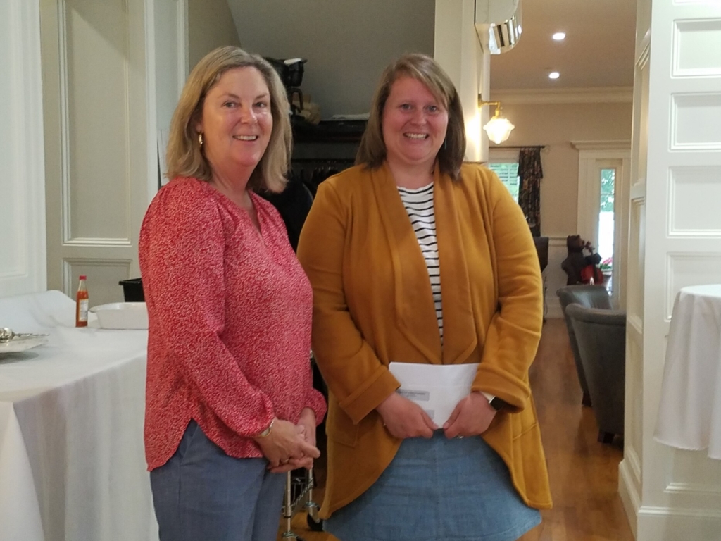 ROTARY SUPPORTS ART PROGRAM-Ashley Oliver, Director of Paint Doodle and Create, gave a recent presentation to the Bethel Rotary Club about the summer art program she offers for area youth. Afterward, club President Jean Benedict (left) presented her a scholarship check for the program. The scholarship was made possible by the Bethel Rotary 5k Fund.