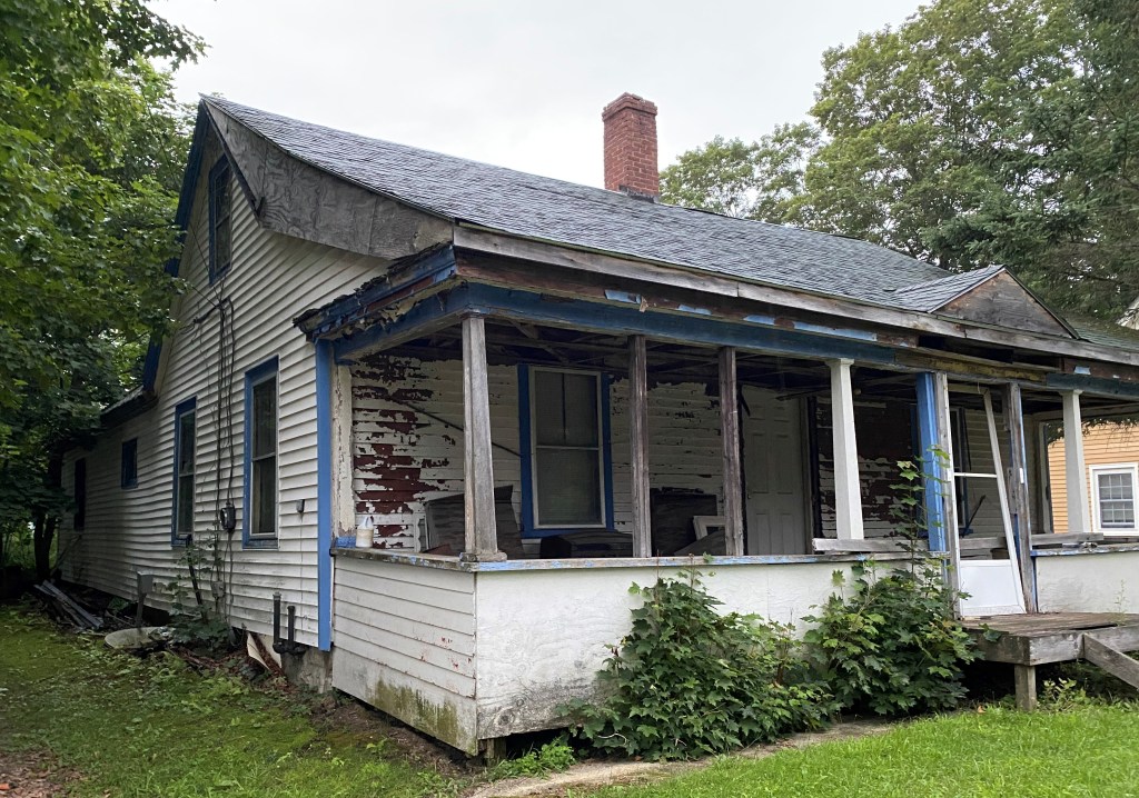Board Vice Chairman Scott Hunter said the Fire Department had deemed it unsafe and in response the owner reshingled the roof. The building has continued to deteriorate and is partially collapsed.