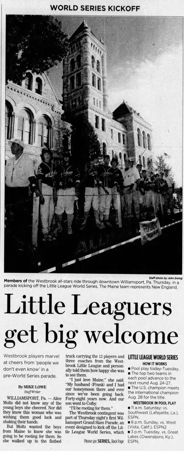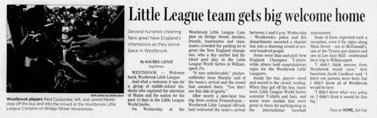 Upon reaching Williamsport, the Westbrook players got to bask in the national scene. Before their first game against Louisiana, Boston Red Sox catcher Jason Varitek gave them a call to wish them well.