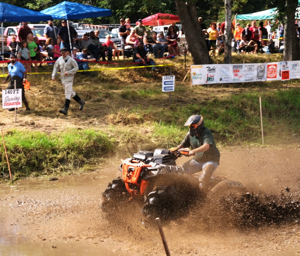 Andy Dupuis plows his ATV through the 200-foot course Saturday during the fourth annual Adam G. Gatchell Memorial Mud Run in Mexico. It is held in memory of organizer Bonnie Gatchell’s son, Adam, who died in 2018 of fentanyl poisoning from his opioid addiction. Mud and trucks were among Adam’s favorite things, she said. Proceeds assist people in detox and rehabilitation programs, and sober housing expenses. Bruce Farrin/Rumford Falls Times