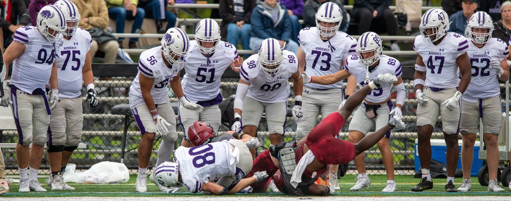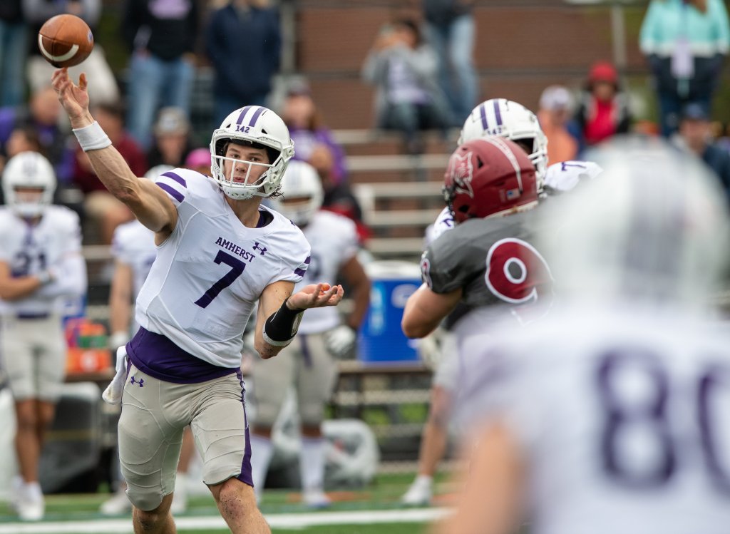Amherst tallied 310 yards of offense to Bates’ 221. Cox completed 17 passes for 167 yards. Sam Gerber had a team-high six catches for 26 yards, Carter Jung five for 32 yards and Owen Gaydos had four receptions for 35 yards.