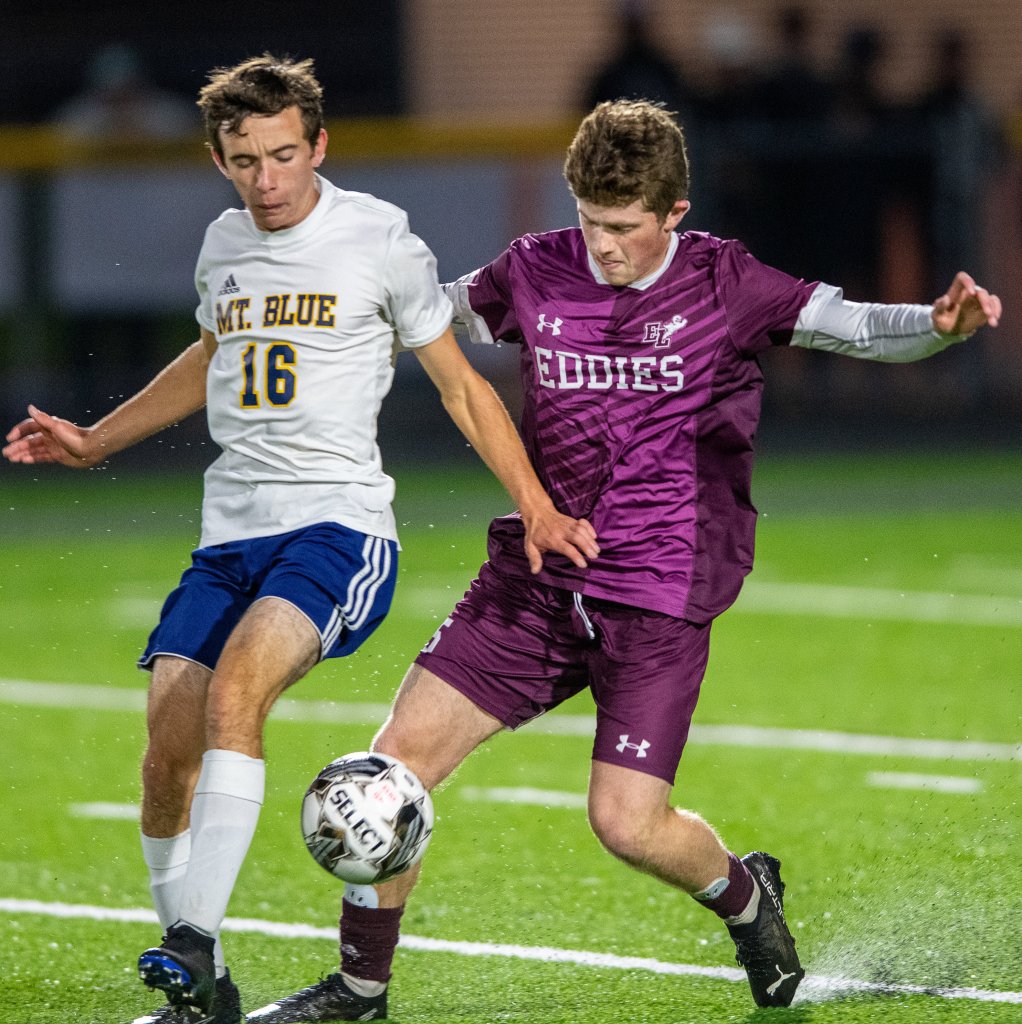 Orin Slover added Edward Little’s fourth goal with a long kick. Slover is a swing player between the Red Eddies’ varsity and junior varsity teams.