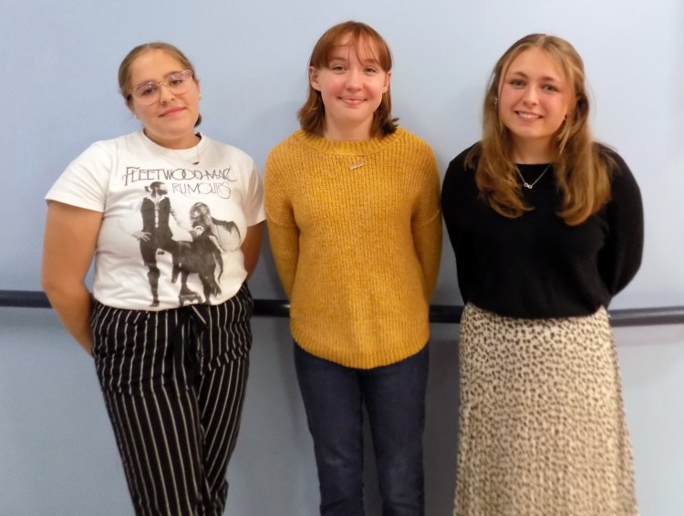 Spruce Mountain High School juniors, from left, Avery Ryder, Violet Bellerose and Skylar Condon, all of Jay, are candidates for two seats on the Regional School Unit 73 board of directors. The board voted Thursday to have the student body vote which two would serve as student representatives. Pam Harnden/Livermore Falls Advertiser