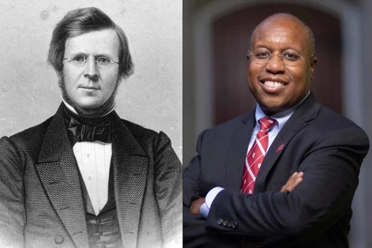 Oren Cheney, left, was the first president of Bates College in Lewiston. Its current president, Garry Jenkins, will be formally installed in the office Oct. 27. Bates College
