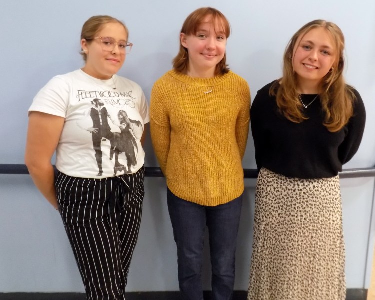 Spruce Mountain High School juniors from left Avery Ryder, Violet Bellerose and Skylar Condon are seen Thursday night, Oct. 12, at Spruce Mountain Primary School in Livermore. They are seeking positions as student representatives to the Regional School Unit 73 board of directors, which only has two seats for students on the board. The high school student body will decide with the two receiving the most votes getting seats. Pam Harnden/Livermore Falls Advertiser