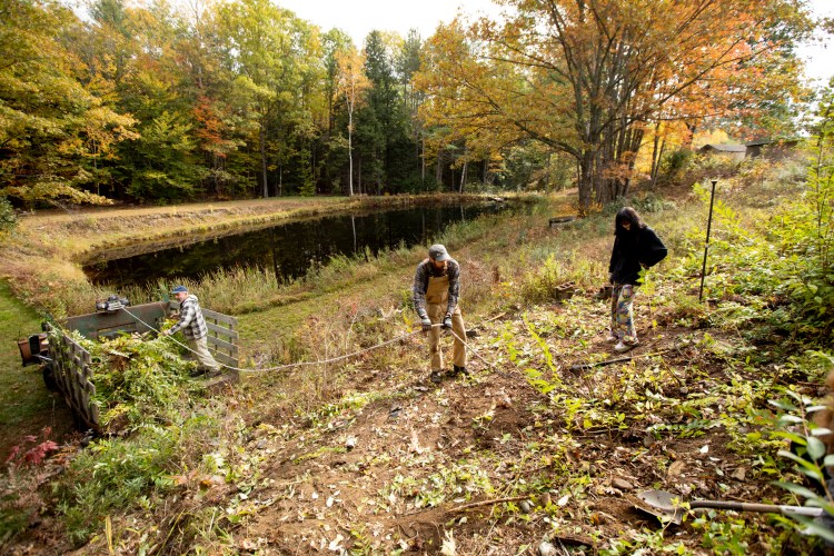 The hillside surrounds an ice pond that had been dug with a horse-drawn backhoe in the early 1900’s by Gunther’s husband’s ancestors. Once it was weeded, Gunther hoped to better see the Siberian Iris, lemon thyme, and crown vetch she had planted there.