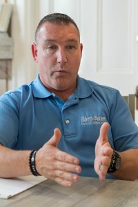 David Mailhot, a director at Albert & Burpee Funeral Home, speaks Saturday at the business in Lewiston. Joe Phelan/Kennebec Journal