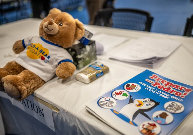 Activity books and teddy bears await victims and their families Sunday morning at the Family Assistance Center set up at the Lewiston Armory at 65 Central Ave. Andree Kehn/Sun Journal