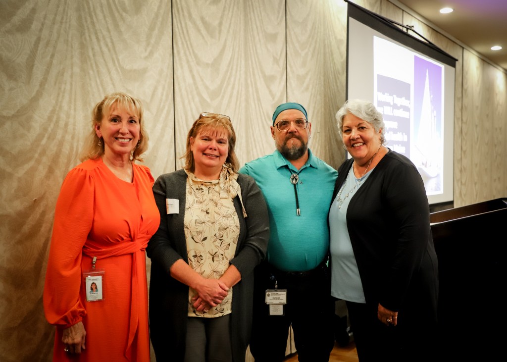 Tri-County Mental Health Services hosted its annual meeting on Oct. 17. The winner of this year’s Giving Voice Award was Joyce Richmond of Gold Star Mothers. From left are Veteran Liaison Jerry Dewitt, Joyce Richmond, CEO Catherine R. Ryder and board member Yvette Pouzol. Contributed photo