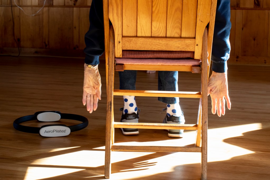 A participant in Lauren Wallin’s Chair Pilates class at Bethel Methodist Church. Rose Lincoln/Bethel Citizen