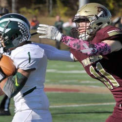 Justin Bryant of Marshwood, Jarett Flaker of Scarborough and Zach Maturo of Bonny Eagle are the three players in the running to be named Maine’s top senior football player.