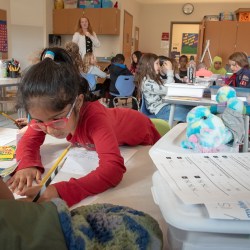 Connors Elementary School Civil Rights Team members paint a crosswalk in front of the school for the upcoming celebration.