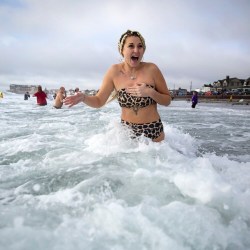 Keeping their distance, a few brave souls braved the ocean for Caring Unlimited's 20th annual Atlantic Plunge on Saturday in Kennebunk.