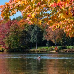 Fall foliage on Thompson Lake is nearing peak Wednesday.