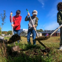 Watch: Windsor Elementary School students leave their mark in the soil after planting a dozen fruit trees